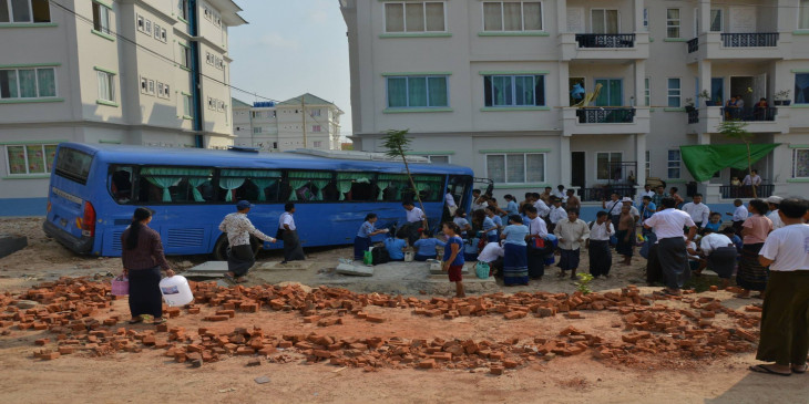 ကားႏွစ္စီးေပၚမွာ စုစုေပါင္း ၀န္ထမ္းဦးေရ ၈၀ ဦးခန္႔ပါတယ္လို႔ သိရပါတယ္။ ကားေမာင္းသူ ႏွစ္ဦးကုိေတာ့ အေရးယူဖုိ႔ ေဆာင္ရြက္ေနၿပီး ေလာေလာဆယ္မွာေတာ့ ကုတင္ ၁၀၀၀ ေဆးရံုးကို ပို႔ေဆာင္ထားတယ္လို႔ ဆုိပါတယ္။။ (သတင္း - ေနၿဖိဳး၀င္း၊ ဓာတ္ပံု - MOI)