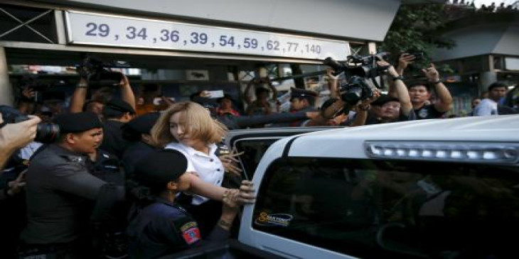 A student activist is detained during a silent protest after Thailand's election commission filed charges against a group for posting "foul and strong" comments online criticising a military-backed draft constitution, in Bangkok, Thailand April 27, 2016. REUTERS/Jorge Silva