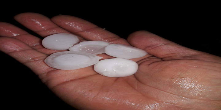 ၿမိဳ႕ေပၚမွာက်တဲ့ မိုးသီးေတြဟာ အနည္းငယ္ေသးၿပီး ၿမိဳ႕နဲ႔ ၁၀ မိုင္ပတ္လည္ေလာက္ေဝးတဲ့ ေက်းရြာမ်ားမွာ က်တဲ့ မိုးသီးေတြက ပိုႀကီးတယ္လို႔ သတင္းမွာ ေရးသားေဖာ္ျပပါတယ္။