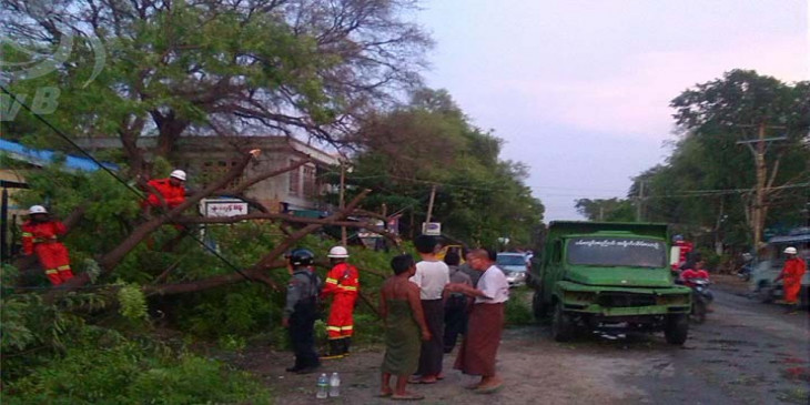 အလားတူ မႏၱေလးၿမိဳ႕ေပၚမွာလည္း ေမလ ၁ ရက္ေန ညေန ၆ နာရီခြဲေလာက္က တိုက္ခတ္ခဲ႔တဲ႔ မိုးသက္ေလျပင္းေၾကာင့္ ကန္ေတာ္ႀကီးပတ္လမ္းတေလွ်ာက္မွာ သစ္ပင္ၿပိဳလဲတာေတြ ဓာတ္တိုင္လဲက်တာေတြ ဆိုးဆိုးရြားရြားျဖစ္ခဲ႔ပါတယ္။