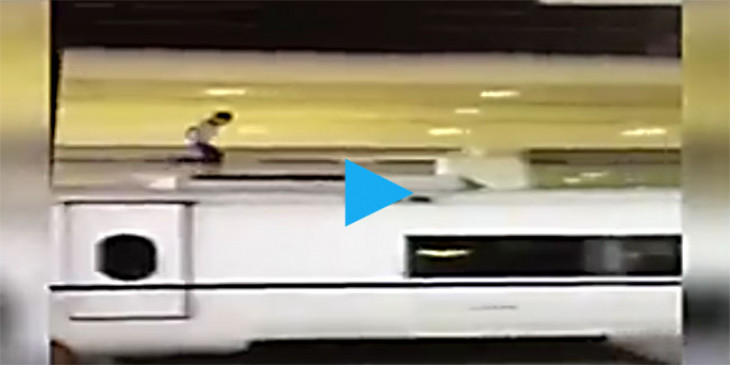 ျမန္ႏႈန္းျမင့္ရထားဟာ ပလက္ေဖာင္းနံပါတ္ ၁၃ မွာ ရပ္နားခ်ိန္ အဆိုပါအမ်ိဳးသားက ရထားေခါင္မိုးေပၚ ေျပးလႊားေနခဲ့တာကို မ်က္ျမင္ေတြ႔သူ ခရီးသည္တဦးက လက္ကိုင္ဖုန္းနဲ႔ ႐ုိက္ယူႏိုင္ခဲ့တာပါ။