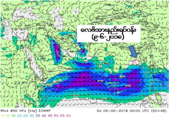 ဘဂၤလားပင္လယ္ေအာ္မွာ ျဖစ္ေပၚလာႏိုင္တဲ့ မုန္တိုင္းေၾကာင့္ ေမလ ၁၅ ရက္ေန႔မွ ၂၁ ရက္ အတြင္း ျမန္မာႏိုင္ငံေတာင္ပိုင္းေဒသမ်ားမွာ မုတ္သံုေလ၀င္ေရာက္ႏိုင္တယ္လုိ႔ မိုးေလသဌာနက ခန္႔မွန္းပါတယ္။