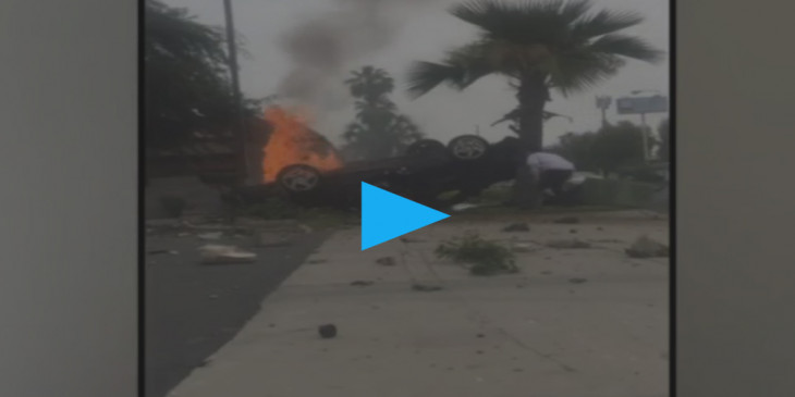 ကားတိုက္မႈျဖစ္ပြားၿပီး မီးေလာင္ေနတဲ့ ကားအတြင္းက ကယ္ထုတ္ခဲ့တဲ့ အေမရိကန္ျပည္ေထာင္စု ကယ္လီဖိုးနီးယားက လူတဦးကို သူရဲေကာင္းအျဖစ္ ခ်ီးက်ဴးေနပါတယ္။