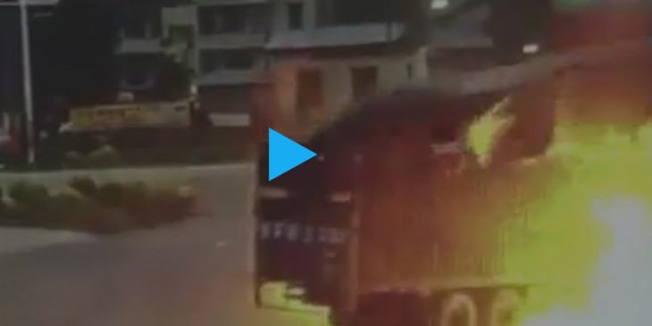 တ႐ုတ္တြင္ ကုန္ကား ၂ စီး မ်က္ႏွာခ်င္းဆုိင္တိုက္ မီးေလာင္ေပါက္ကြဲ (႐ုပ္သံ)