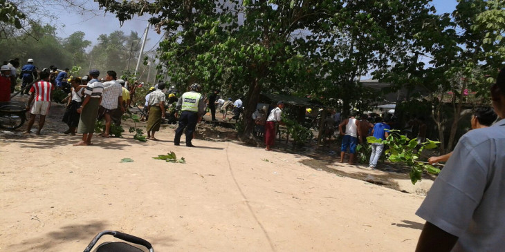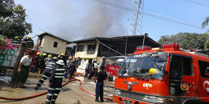 မဂၤလာဒံုၿမိဳ႕နယ္ ပ်ဥ္းမပင္ ပတၱျမားလမ္း လန္ဒန္စက္႐ုံသို႔ သြားတဲ့လမ္းမေပၚမွာ ဆီေဘာင္ဆာ မီးေလာင္ေနပါတယ္။ လက္႐ွိ အခ်ိန္မွာ မီးသတ္တပ္ဖြဲ႔က level 3 မီးသတ္ယာဥ္အုပ္စုနဲ႔ ၿငိမ္းသတ္ေနပါတယ္။ (ဓာတ္ပံု - ႏြယ္ေလး)