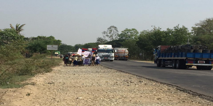 ေမလ ၁၆ ရက္ေန႔မွာ ရန္ကုုန္-မႏၱေလး လမ္းေဟာင္း မိုုင္တိုုင္အမွတ္ ၂၉၂ မိုုင္ ၆ ဖာလံုုမွာ ညအိပ္ၿပီး ဒီေန႔ မနက္မွာ ေနျပည္ေတာ္ကိုု ဆက္လက္ခ်ီတက္ေနတာပါ။