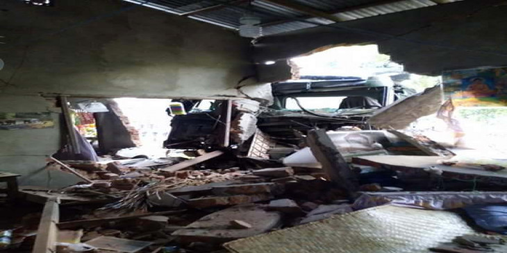 ယာဥ္တိုက္မႈေၾကာင့္ ေဆး႐ုိးခင္ ရြာဦးတံတား ဓာတ္တိုင္နဲ႔ ဆိုင္ခန္းေတြ ပ်က္စီးဆံုးရံႈးကာ တိုက္မီတဲ့ အိမ္နံရံၿပိဳက်ၿပီး အိမ္ပိုင္ရွင္ ဦးျမင့္ဦးရဲ႕ ဇနီး အိပ္ေပ်ာ္ေနသူ မစန္းေအးမွာ နံရံၿပိဳက်ခ်ိန္မွာ ဒဏ္ရာရွိတဲ့အတြက္ ဖဒို ေဆး႐ုံကုိ အေရးေပၚ တင္ပို႔လိုက္ရပါတယ္။