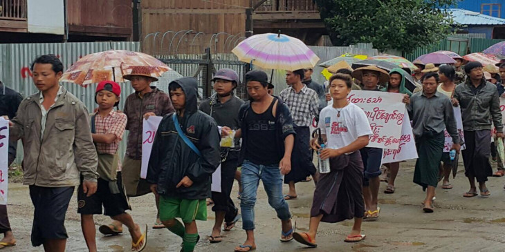 ကခ်င္ျပည္နယ္ ဖားကန္႔ၿမိဳ႕နယ္ထဲက ေဝွဆုိင္းေက်းရြာသား အင္အား ၄၀ ေက်ာ္က ေရႊနဲ႔ ေက်ာက္မ်က္တူးေဖာ္ခြင့္ လုပ္ကြက္မရွိဘဲ ဥ႐ုေခ်ာင္းကို ပိတ္ဆို႔ၿပီး ေရႊနဲ႔ ေက်ာက္တူးေဖာ္တဲ့ အတြက္ ဒီကေန႔ မနက္ပိုင္းက ဆႏၵျပခဲ့ၾကပါတယ္။