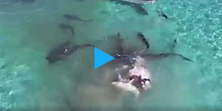 ၾသစေၾတးလ်ႏုိင္ငံ အေနာက္ပိုင္း ငါးမန္း ပင္လယ္ေအာ္မွာ ေ၀လငါးေသတေကာင္ကို ငါးမန္းအုပ္စုက ၀ိုင္းဆြဲေနတာကို ေမာင္းသူမဲ့ေလယာဥ္ေပၚကေန ႐ုိက္ကူးထားပါတယ္။