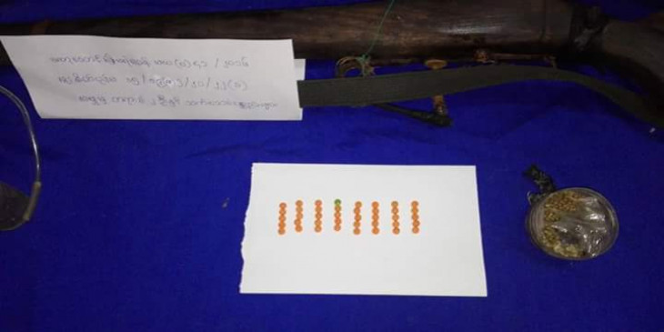 ၀င္ေရာက္ရွာေဖြရာမွာ ေနအိမ္ငွားရမ္းေနထိုင္္သူ ေဇာ္လြင္ဦးနဲ႔ မူးယစ္ေဆးဝါးသံုးစြဲဖုိ႔ ေရာက္ရွိေနသူ မ်ိဳးသက္ဦး တို႔နဲ႔အတူ ငွက္ေလွာင္အိမ္အတြင္း ဝွက္ထားတဲ့ WYပန္းေရာင္စိတ္ႂကြေဆးျပား ၄၀ ေလာက္နဲ႔ လက္လုပ္ယမ္းေထာင္း ေသနတ္ ၂ လက္ကုိ ဖမ္းဆီးမိခဲ့တယ္လုိ႔ ရဲတပ္ဖြဲ႔က ေျပာပါတယ္။