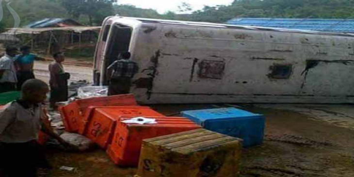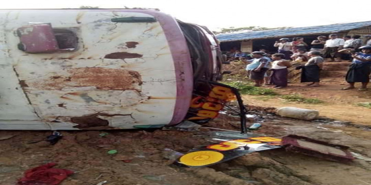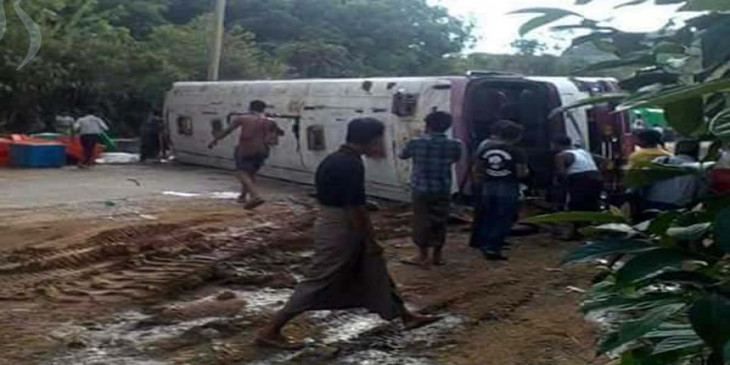 စစ္ေတြ-ရန္ကုန္ေျပးဆြဲေနတဲ့ မင္းထက္သာခရီးသည္တင္ကား တိမ္းေမွာက္လို႔ ခရီးသည္ ၂ ဦး ေသဆုံးသြားပါတယ္။