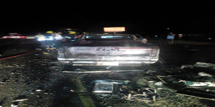 ရန္ကုန္-မႏၱေလး အျမန္လမ္းတြင္ ယာဥ္ ၂ စီးတိုက္ၿပီး မီးေလာင္ကၽြမ္း၊ ၁ ဦးေသဆံုး