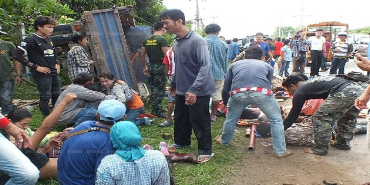 ျမန္မာေဆာက္လုပ္ေရးလုပ္သားမ်ား ကားေမွာက္၊ ၁ ဦးေသဆံုး ၁၅ ဦး ဒဏ္ရာရ