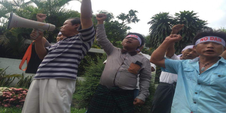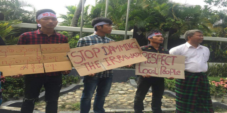 စီမံကိန္းဟာ ဧရာ၀တီျမစ္ရဲ႕ ေရရွည္တည္တံ့မႈ၊ ေရေ၀ေရလဲ၊ သဘာ၀ပတ္၀န္းက်င္ထိခိုက္ေစမႈ စတာေတြေၾကာင့္ ႏိုင္ငံတ၀န္း ကန္႔ကြက္ထုတ္ေဖာ္ခဲ့ၾကၿပီးေနာက္ ၂၀၁၀ ေရြးေကာက္ပဲြက တက္လာတဲ့ သမၼတေဟာင္း ဦးသိန္းစိန္က စီမံကိန္းကုိ ယာယီရပ္ဆိုင္းခဲ့ရပါတယ္။