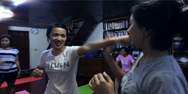 အင္အားနည္းသူေတြအျဖစ္ ယူဆထားတဲ့ အမ်ဳိးသမီးေတြအတြက္ လိင္ပုိင္းဆုိင္ရာ အျမတ္ထုတ္မႈေတြကေန ကာကြယ္ႏုိင္ဖို႔ အမ်ဳိးသမီး ကုိယ္လံုပညာသင္တန္းမွာ တုိက္ခုိက္ေရးနည္းအျပင္ အမ်ဳိးသမီးေတြ ႀကံဳေတြ႔ေနရမႈေတြကို ျပန္လည္ေဆြးေႏြးေျပာဆုိမႈ၊ ဥပေဒအရ နားလည္မႈေတြရွိဖို႔ သင္ၾကားေပးေနတာပါ။