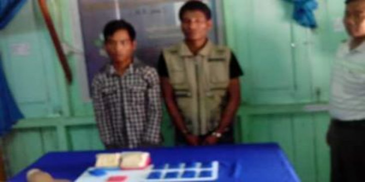 ငါးအိုးေက်းရြာက သိန္းဝင္းနဲ႔ စိုးမိုးဝင္းတို႔ စီးနင္းလာတဲ့ ဆုိင္ကယ္ကုိ ရပ္တန္႔ရွာေဖြရာက ပန္းေ႐ာင္စိတ္ႂကြေဆးျပား ၁၇၀၀ နဲ႔ ဘိန္းျဖဴ ၂၂ ဂရမ္ လာလတန္ဖုိးက်ပ္ ၇၃ သိန္းဖုိးေလာက္ ဖမ္းဆီးရမိခဲ့တာပါ။
