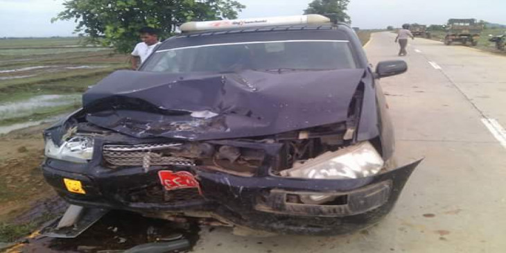 "ဟိုက္ဂ်က္က ေျမာက္ဦးကေန ေက်ာက္ေတာ္ကိုသြားပါတယ္။ ဟိုဘက္ကကားျဖစ္တဲ့ ဆက္ဆိအနက္ေရာင္ကားက ေက်ာက္ေတာ္ကေန ေျမာက္ဦးကိုလာပါတယ္။ လာတဲ့အခါမွာ ေျမာက္ဦးကေန ေက်ာက္ေတာ္သြားတဲ့ ဟိုက္ဂ်က္အျဖဴက လမ္းမွားၿပီေတာ့ ဆဆီကားရဲ့လမ္း ဘယ္ဘက္ လမ္းေက်ာကုိ ၀င္ၿပီးေတာ့တိုက္လိုက္တာပါ။ ဟိုက္ဂ်က္ကားရဲ႕ ယာဥ္ေမာင္းတစ္ဦးႏွင့္ ေရွ႕မွာထိုင္ၿပီး လိုက္ပါလာတဲ့ ခရီးသည္ႏွစ္ဦး ဒဏ္ရာရရွိသြား တယ္” လို႔ ေျပာပါတယ္။