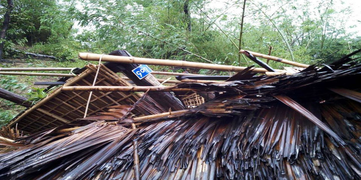 “ဟုတ္ကဲ့ မေန႔က ၁၂း၃၀ မွာ ေလဆင္ႏွာေမာင္းတိုက္တာပါ။ အရမ္းကိုေၾကာက္ဖို႔ ေကာင္းပါတယ္။ အိမ္ေျခက ၃၆ လုံးရယ္၊ အိမ္ေထာင္စု ၃၈ စုက လူဦးေရ ၁၆၉ ဦး အိုးမဲ့အိမ္မဲျဖစ္သြားပါတယ္။ ေနာက္ၿပီး အသက္ ၁၁ အရြယ္ကေလးမတစ္ေယာက္ ျပင္းထန္ဒဏ္ရာရပါတယ္။ အခုအေျခအေနက သူတို႔ေတြ စာသင္ေက်ာင္းမွာ တ၀က္နဲ႔ ေက်းရြာဘုန္းေတာ္ႀကီး ေက်ာင္းမွာ တ၀က္ထားပါတယ္။ ေက်းရြာမွာရွိတာေတြကို ေ၀ငွၿပီး စားေသာက္ေနရပါတယ္။ အေရး တႀကီးကေတာ့ ကယ္ဆယ္ေရးေတြ လိုေနပါတယ္။”