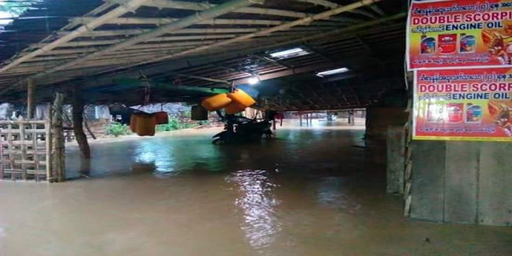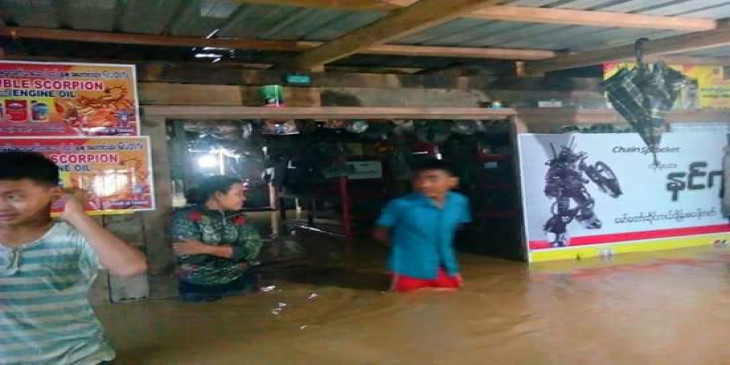 “မေန႔ကတည္းက ေရေတြတက္လာတာပါ။ အခုျဖည္းျဖည္းခ်င္းနစ္ျမဳပ္လာေနတယ္။ ဒီေန႔ေတာ္ေတာ္မ်ားမ်ား မိုးေတြရြာတယ္။ ေရေတြတက္လာတယ္။ နစ္ျမဳပ္ေနတဲ့ ရြာေတြကေတာ့ ဘုရားေမာ္၊ စူးပုတ္ကုန္း၊ ခ်င္းကြင္း၊ ေပါက္ေတာ၊ နတ္ေမွာ္၊ ၿပီးေတာ့ ေက်ာင္းကုန္းဇီးကြ်န္း၊ သျဗဳခ်ိဳင္ေက်းရြာမ်ားမွာ ေရဆက္တိုက္နစ္ျမဳပ္ေနပါတယ္။ အခုေရျမဳပ္ေနတဲ့ရြာေတြကို လက္တေလာ အကူအညီေတြ ေဒသခံေတြက လုပ္ေပးေနရပါတယ္။ အကူအညီေတြဘယ္ဌာနမွ မလာေသးဘူး။ ကားလမ္းေတြေရာ သြားလို႔မရေတာ့ဘူး။ ကား ခရီးစဥ္ေတြကိုလည္း ယာယီရပ္ဆိုင္းထားပါတယ္” လုိ႔ ေျပာပါတယ္။