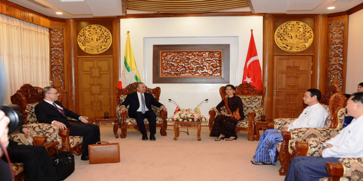 ျမန္မာႏိုင္ငံျခားေရး၀န္ႀကီးဌာန ျပည္ေထာင္စု၀န္ႀကီး ေဒၚေအာင္ဆန္းစုၾကည္နဲ႔ တူရကီ နုိင္ငံျခားေရး၀န္ႀကီး မာလက္ကာဘူတိုုဂလူတို႔ ဒီကေန႔ မနက္က ေနျပည္ေတာ္မွာ ေတြ႔ဆံု ေဆြးေႏြးတယ္လို႔ ႏိုင္ငံျခားေရး ၀န္ႀကီးဌာနက သတင္းထုတ္ျပန္ပါတယ္။