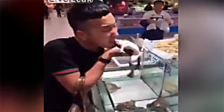 အံ့အားသင့္ေနၾကတဲ့ ေစ်း၀ယ္ေတြၾကားမွာ သူဟာ မယံုႏိုင္ေလာက္စရာ ၿပံဳးၿပံဳးရႊင္ရႊင္နဲ႔ စားေသာက္ျပခဲ့ၿပီး က်န္ရွိေနေသးတဲ့ ဖားရဲ႕ကိုယ္ပိုင္းကို ကိုင္ေျမႇာက္ကာ ကင္မရာဘက္ကို လွည့္ျပခဲ့တာပါ။