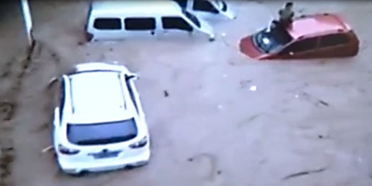 တ႐ုတ္ေတာင္ပုိင္းတြင္ ႐ုတ္တရက္မုိးသည္း၊ လမ္းမ်ားေရလႊမ္းၿပီး ကားမ်ား ေမ်ာပါ (႐ုပ္သံ)