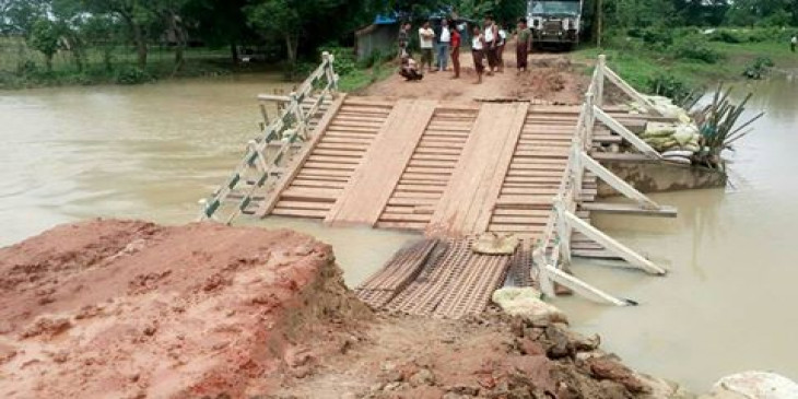ႀကိဳ႕ပင္ေကာက္တြင္ ေခ်ာင္းေရတုိက္စားမႈေၾကာင့္ တံတားတခု က်ဳိးက်