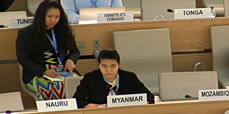 ဆြစ္ဇာလန္ႏိုင္ငံ၊ ဂ်နီဗာမွာ က်င္းပေနတဲ့ ၃၂ ႀကိမ္ေျမာက္ လူ႔အခြင့္အေရးေကာင္စီ ညီလာခံမွာ ကုလသမဂၢ လူ႔အခြင့္အေရး ကိုယ္စားလွယ္ ၂ ဦးရဲ႕ ျမန္မာႏိုင္ငံနဲ႔ ပတ္သက္ၿပီး တင္ျပခ်က္ကို ျမန္မာအစိုးရ ကိုယ္စားလွယ္ ေဒၚသက္သင္ဇာထြန္းက ဇြန္ ၁၇ ရက္ေန႔က တုံ႔ျပန္ေျပာဆိုလိုက္တာ ျဖစ္ပါတယ္။
