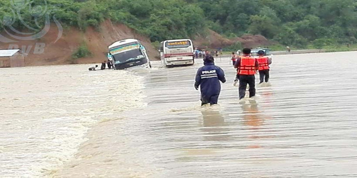 ေရႀကီးမႈေၾကာင့္ အမ္းၿမိဳ႕နယ္ ကဇုေခ်ာင္အနီးလမ္းမေပၚ လူ ၁၀၀၀ ခန္႔ ပိတ္မိေန
