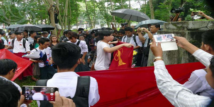 ၇ ဇူလိုင္ေန႔ အခမ္းအနားကုိ ရန္ကုန္တကၠသုိလ္ေက်ာင္းသားသမဂၢရင္ျပင္တြင္ က်င္းပ