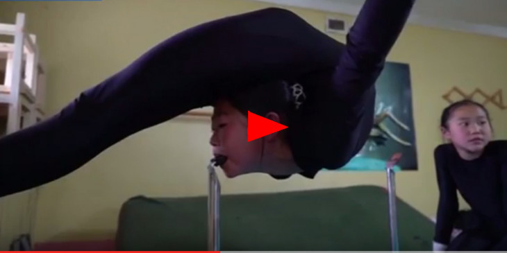 ခႏၶာကိုယ္ကို သြားျဖင့္ထိန္းရန္ ေလ့က်င့္ေနသည့္ မြန္ဂိုလီးယား ကေလးကၽြမ္းဘားမယ္ (႐ုပ္သံ)