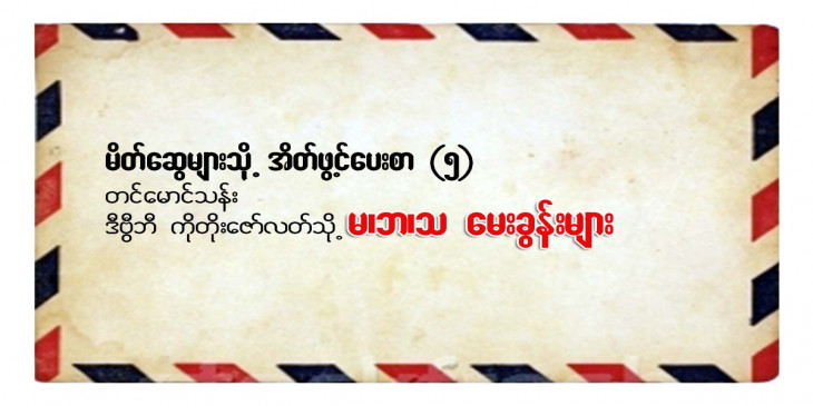 မိတ္ေဆြမ်ား သို႔ အိပ္ဖြင့္ေပးစာ (၅)