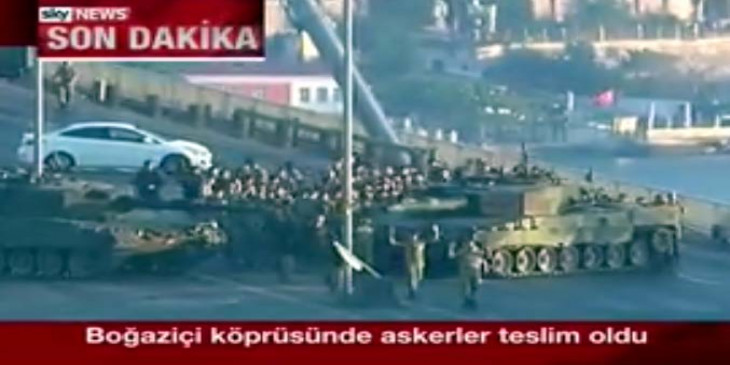 အစၥတန္ဘူလ္တံတားမွာ စစ္သားေတြ တင့္ကားေတြေပၚကဆင္းၿပီး လက္ေျမာက္ လက္နက္ခ်တဲ့ ဒီရုပ္သံကို တူရကီတီဗြီကေန ထုတ္လႊင့္ျပခဲ့ပါတယ္။