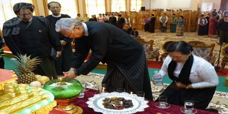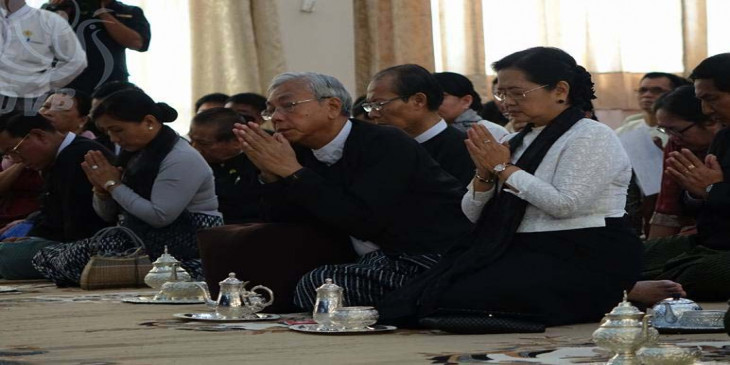 သမၼတဦးထင္ေက်ာ္ႏွင့္ ဇနီး အာဇာနည္ေန႔ဆြမ္းကပ္လွဴဒါန္း