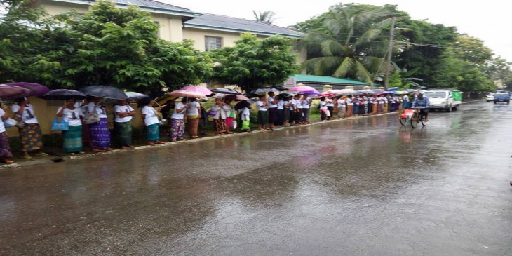 တပ္မေတာ္ရဲ႔ လူ႔အခြင့္အေရးခ်ိဳးေဖာက္မႈေတြကို ေၾကျငာခ်က္ထုတ္ျပန္သူ ရခိုင္ျပည္လြတ္ေျမာက္ေရးပါတီ (ေအအယ္လ္ပီ) ျပန္ၾကားေရး တာ၀န္ခံ ဒုတိယဥကၠ႒ (ေဟာင္း) ဦးခိုင္မ်ိဳးထြန္းကို စစ္ေတြၿမိဳ႕နယ္တရား႐ုံးမွာ ဒီေန႔ ႐ုံးထုတ္စစ္ေဆးရာ သံဃာေတြအပါအ၀င္ လူရာနဲ႔ခ်ီၿပီး လာေရာက္စု႐ုံးခဲ့ၾကပါတယ္။