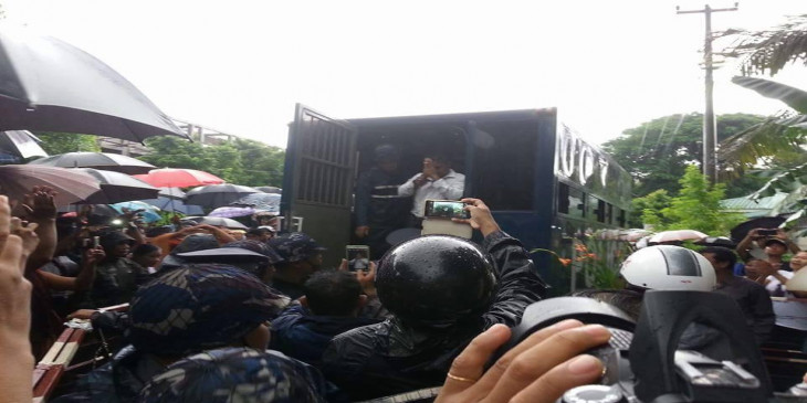 ဒီေန႔႐ုံးထုတ္ရာမွာ တခိ်ဳ႔က တရားခြင္ထဲလာေရာက္နားေထာင္သလို တခ်ိဳ႕က အျပင္ကေန ဦးခိုင္မ်ိဳးထြန္းကို လာေရာက္ အားေပးခဲ့ၾကပါတယ္။