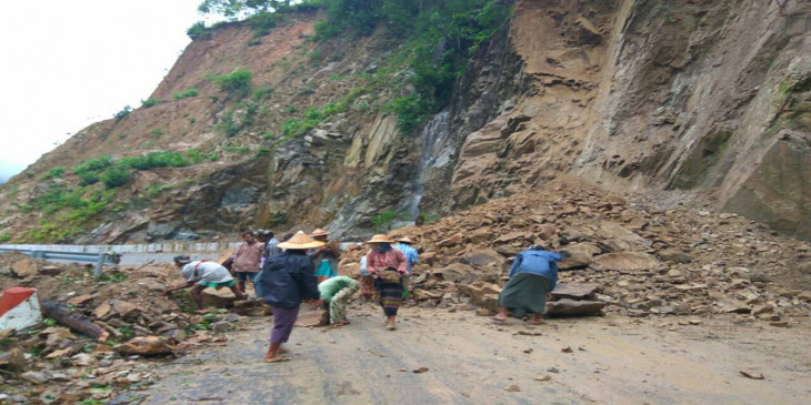 ၾသဂုတ္ ၁၂ ရက္ေန႔ မနက္ပုိင္းကလည္း လမ္းပိတ္ဆို႔မႈ ထပ္မံျဖစ္ပြားခဲ့လုိ႔ လမ္းလုပ္သား ေတြ၊ ေျမေကာ္စက္နဲ႔ ရွင္းလင္းခဲ့ရတယ္လို႔ ဒီဗြီဘီ နယ္ခံသတင္းေထာက္ ေျပာပါတယ္။