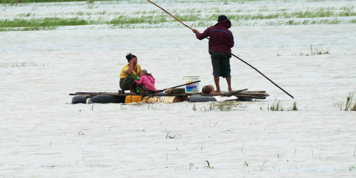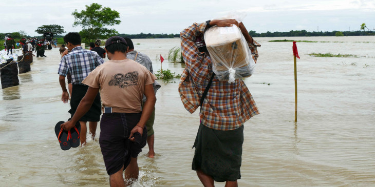 ရန္ကုန္တုိင္း တုိက္ႀကီးၿမိဳ႕နယ္အတြင္း ေက်းရြာတခ်ိဳ႕ ေရနစ္ျမဳပ္ေနတာကုိ ၾသဂုတ္ ၁၃ ရက္ေန႔က ေတြ႔ရစဥ္။