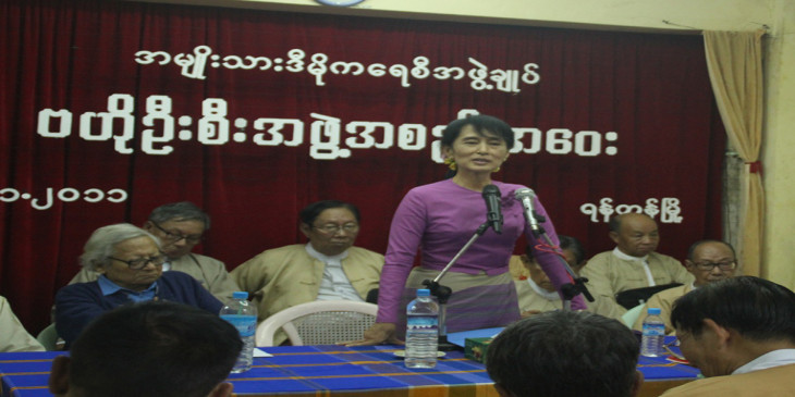 ပါတီ အေထြေထြအတြင္းေရးမႉး ေဒၚေအာင္ဆန္းစုၾကည္ကလည္း မွတ္ပံုတင္ေရးဘက္က ရပ္တည္တဲ့ အေၾကာင္းနဲ့ ဒါဟာ စြန့္စားျပီးလုပ္တဲ့ အလုပ္ျဖစ္တယ္လို့ အစည္းအေ၀း အျပီး ေျပာၾကားခဲ့ပါတယ္။