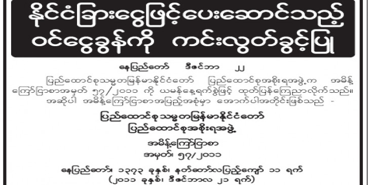 ဒီဇင္ဘာလ ၂၁ ရက္ေန့ ေန့စြဲနဲ့ ထုတ္ျပန္ ေၾကညာခ်က္ကို ုျမန္မာနုိင္ငံ ျပည္ေထာင္စုအစိုးရအဖြဲ့ အတြင္းေရးမႉး ဦးတင္မ်ိုးၾကည္ လက္မွတ္နဲ့ ထုတ္ျပန္ထားတာျဖစ္ျပီး အစုိးရပုိင္ သတင္းစာေတြမွာလည္း ေဖာ္ျပထားပါတယ္။