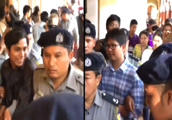 ႐ုိက္တာသတင္းဌာနရဲ႕ ျမန္မာသတင္းေထာက္ ၂ ဦး ဖမ္းဆီးခံထားရၿပီး ျမန္မာႏိုင္ငံအစိုးရ လွ်ို႔ဝွက္ခ်က္မ်ား အက္ဥပေဒ ပုဒ္မ ၃ နဲ႔ ရန္ကုန္ ေထာက္ႀက့့ံနယ္ေျမ ရဲစခန္းမွာ တိုင္ခ်က္ဖြင့္ထားတယ္လို႔ အြန္လိုင္းမွာပ်ံ႔ေနတဲ့ ရဲတုိင္ခ်က္မွတ္တမ္းအရ သိရပါတယ္။
