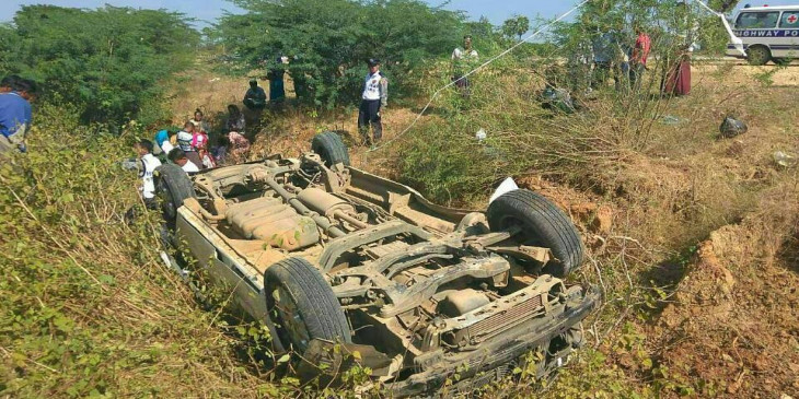 အျမန္လမ္းတြင္ ေနာက္ဘီးေပါက္သည့္ကား အရွိန္လြန္ ေခ်ာက္ထဲက်၊ လူ ၉ ဦး ဒဏ္ရာရ