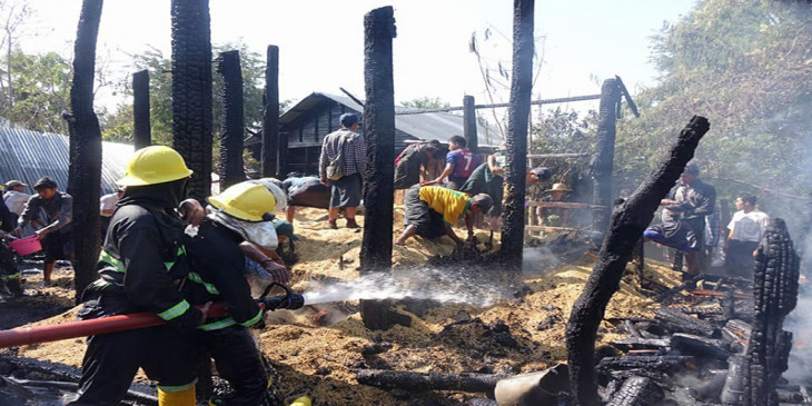 ပန္းေတာင္းၿမိဳ႕နယ္တြင္ မီးႂကြင္းမီးက်န္းမွတဆင့္ ေနအိမ္မ်ား မီးေလာင္