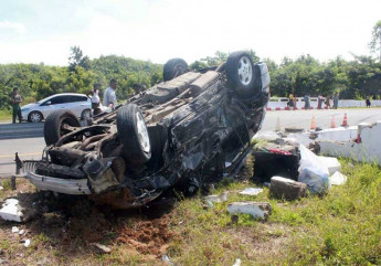 အျမန္လမ္းတြင္ ကားတစီး အရွိန္လြန္ လမ္းေဘးတန္းကုိ ၀င္တုိက္
