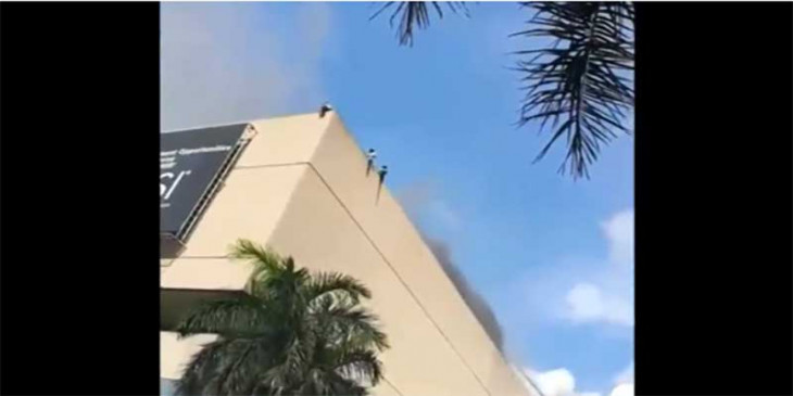 ဗီြဒီယုိထဲမွာေတာ့ မီးေလာင္ေနတဲ့ ေရွာ့ပင္းေမာ အေပၚဆံုးထပ္က လူေတြ ေအာက္ကို ဆင္းဖုိ႔ ႀကိဳးစားေနတာ ျမင္ေတြ႔ရပါတယ္။
