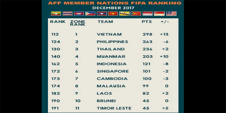 ဒီဇင္ဘာ ၂၁ ရက္ေန႔က ထုတ္ျပန္ခဲ့တဲ့ ကမၻာ့အဆင့္ သတ္မွတ္ခ်က္မွာ အရင္လထက္ အဆင့္ ၁၀ ဆင့္တိုးၿပီး ကမၻာ့အဆင့္ ၁၄၀ မွာ ရပ္တည္ႏိုင္ခဲ့တာျဖစ္ပါတယ္။