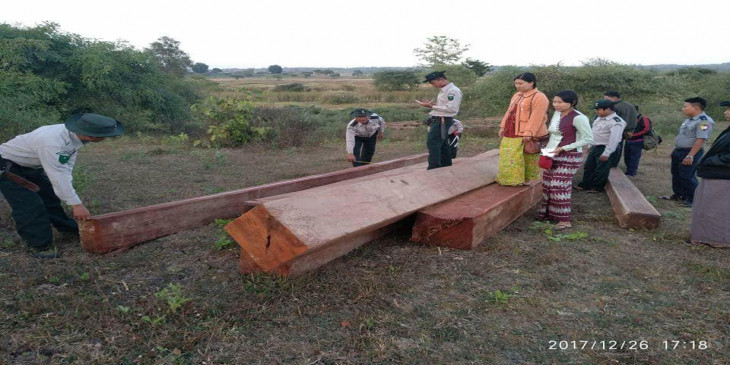 ဒီဇင္ဘာ ၂၂ ရက္ကလည္း ဥသၽွစ္ပင္ၿမိဳ႕တြင္း ဇီဇဝါ ၁၃-လမ္းက လူေနအိမ္ ျခံဝင္းထဲမွာ သစ္စက္နဲ႔ ကြၽန္းသစ္ အပါအဝင္ ၅ ဒသမ ၇ တန္ ဖမ္းမိတဲ့ အိမ္ရွင္ ကိုထြန္းမင္းလတ္ကို သစ္ေတာဥပေဒပုဒ္မေတြျဖစ္တဲ့ ၄၃(က)၊၄၂(ခ)၊၄၂(ဂ) သစ္ေတာထြက္ပစၥည္းမ်ား တရားမဝင္ ေရႊ႕ေျပာင္းျခင္း သယ္ေဆာင္ သို႔မဟုတ္ သိုေလွာင္ျခင္း၊ ခြဲစိတ္ရာင္းခ်ေနျခင္း ဥပေဒေတြနဲ႔ အေရးယူထားတယ္လို႔ဥသၽွစ္ပင္ နယ္ေျမရဲစခန္းမႉး ရဲအုပ္ဝင္းဆန္းက ေျပာပါတယ္။