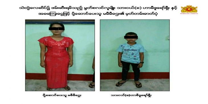 ရခိုင္ျပည္နယ္ သံတြဲၿမိဳ႕နယ္ သံတြဲေလဆိပ္မွာ ကေလးငယ္ ၁ ဦးကို ေခၚေဆာင္သူ အမ်ဳိးသမီးတဦးအား ဖမ္းဆီးရမိခဲ့လို႔ အမႈဖြင့္အေရးယူစစ္ေဆးေနတယ္လို႔ အစိုးရ သတင္းထုတ္ျပန္ေရးေကာ္မတီက ထုတ္ျပန္ပါတယ္။