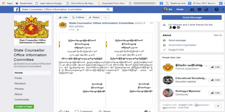 ေဖ့ဘုတ္ခ္စာမ်က္ႏွာအတု - https://www.facebook.com/StateCounsellorOfficeInformationCommittee/photos/pcb.518322695207403/518322471874092/?type=3&theater