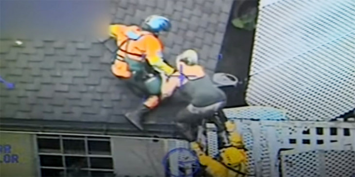 ဒီအျဖစ္အပ်က္ဟာ အေမရိကန္ႏိုင္ငံ၊ ကယ္လီဖိုးနီးယားျပည္နယ္တြင္းမွာ ျဖစ္ခဲ့ၿပီး ကယ္ဆယ္ေရးအဖြဲ႔ေတြဟာ သူတို႔ကို အိမ္ရဲ႕ ေခါင္မိုးေပၚမွ ရဟတ္ယာဥ္နဲ႔ ခက္ခက္ခဲခဲ ကယ္ထုတ္ခဲ့ရပါတယ္။